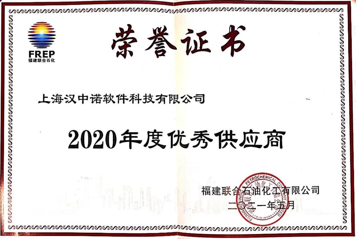 福建联合石化优秀供应商祝贺汉中诺获得福建联合石油化工有限公司颁发的 2020 年度优秀供应商。福建联合石化 - 汉中诺汉中诺长期以来为福建联合石油化工有限公司信息化建设提供专业软件系统和工程技术服务,确保双方保持着良好的合作关系。项目合作从建厂伊始的信息化基础-全厂实时数据库系统,至专业的 DCS 报警管理系统促进重点装置工艺改进优化,再到行业领先的 APC 先进过程控制系统(乙二醇、丁二烯、常减压及芳烃联合装置),实现装置优化及质量卡边控制。汉中诺自始至终优质、高效的工程服务,为福联节能降耗、提高效益、安全生产提供了有效的技术手段支撑。
